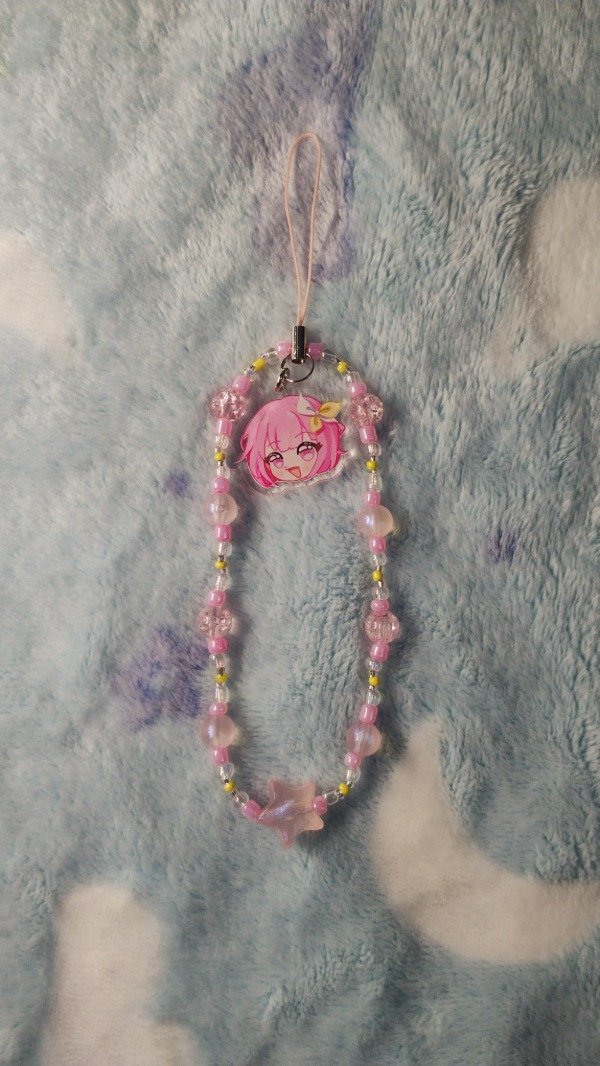 Charm para ser colgado en celular, mochila, llaves, etc. Acrílico de 4x4 cm aprox. con agregado colgante de tanza.