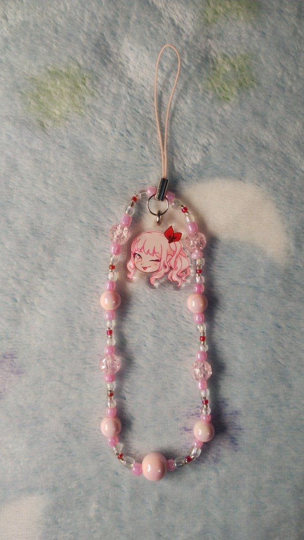 Charm para ser colgado en celular, mochila, llaves, etc. Acrílico de 4x4 cm aprox. con agregado colgante de tanza.