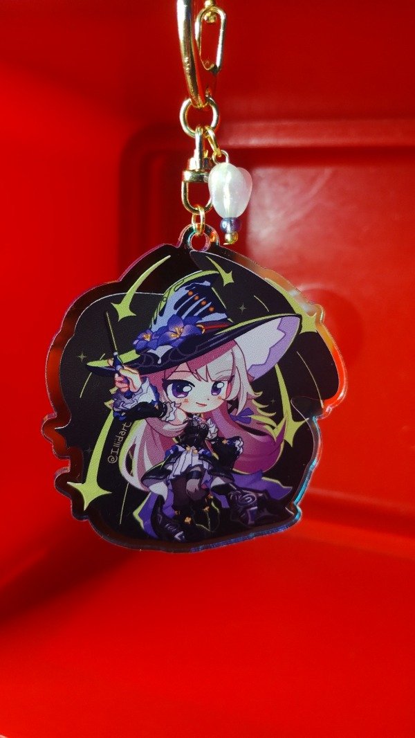 Llavero de acrílico holográfico de 6x6 cm aprox (varía el ancho)