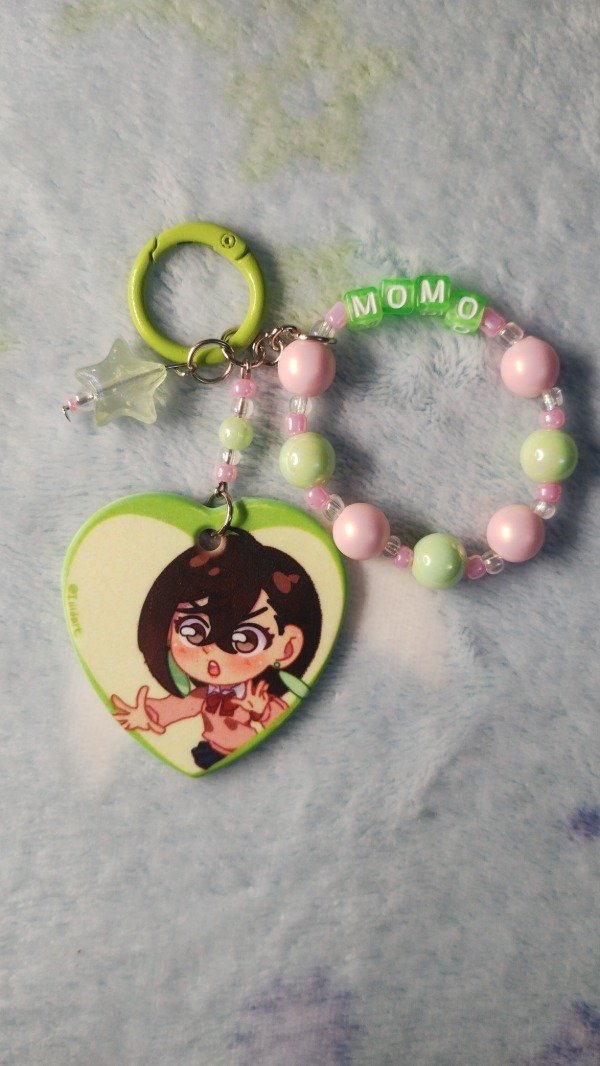 Llavero corazón de 4,5 x 4,5 cm. con agregado colgante de tanza.