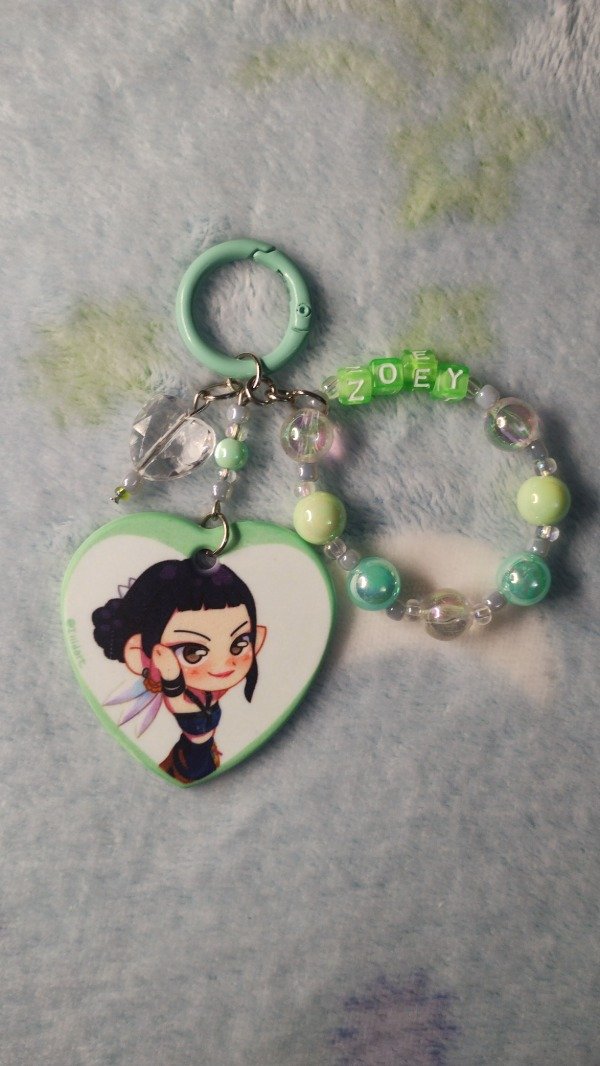 Llavero corazón de 4,5 x 4,5 cm. con agregado colgante de tanza.